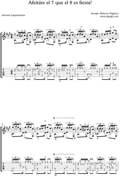 Afeitate el 7 que el 8 es fiesta – Partitura de guitarra dramática