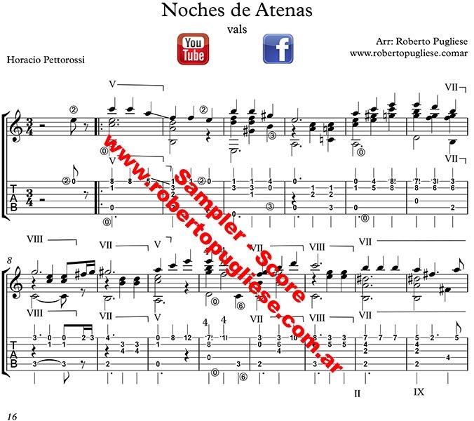 “Noches de Atenas” partitura del vals en guitarra. Con video